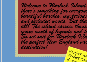 Home | Warlock Island Map | Warlock Cave Map | Legends of Warlock Island | Charlotte's Diary | Tabitha's Snapshots | Passions