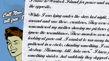 Home | Warlock Island Map | Warlock Cave Map | Legends of Warlock Island | Charlotte's Diary | Tabitha's Snapshots | Passions