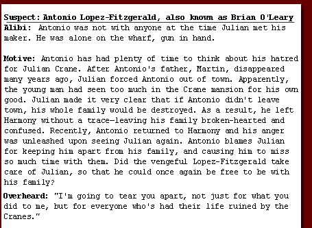 THE SUSPECTS Antonio - Ethan - Eve - Ivy - Luis - Pilar - Rebecca - Sheridan - TC - Theresa